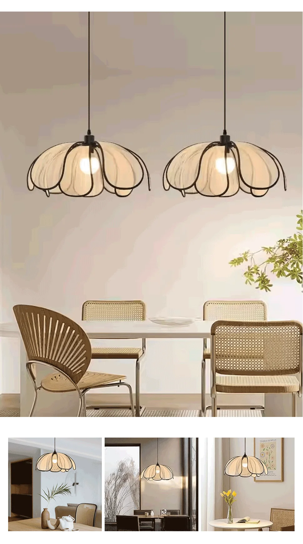 Nordic Modern Retro Chandelier LED Hand-woven Lotus 3 color French Cream Pendant Lamps Bedroom Living Room Lighting Fixtures